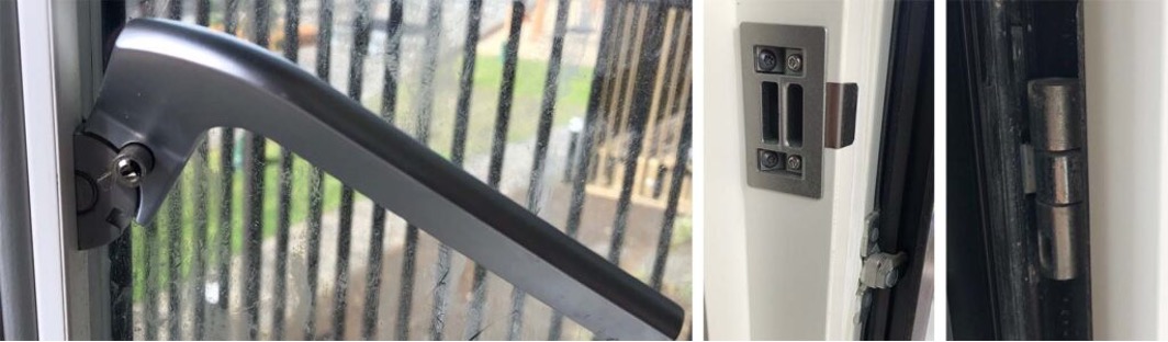Hold håndtaget nede og smør den del som stikker ud. Hvis døren knirker, så smør også beslagene.